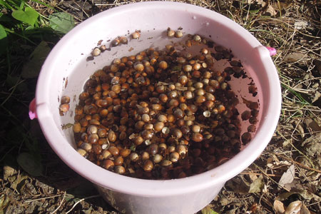 水に浮いたどんぐりは除けて〜♫